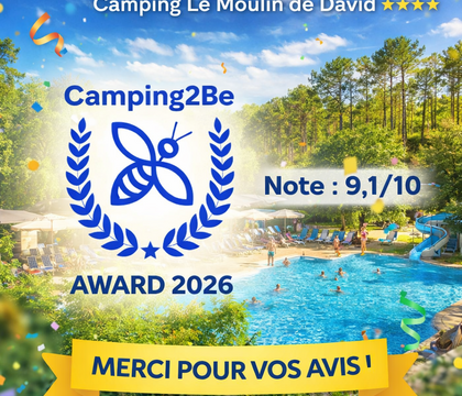 Nous sommes remplis de joie et de fierté de vous annoncer une nouvelle exceptionnelle : le Camping Le Moulin de David a été honoré d'un prestigieux Award Camping2Be !