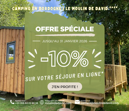 Au Camping Le Moulin de David, nous vous invitons à rêver de soleil, de nature et de détente en profitant dès maintenant de nos offres Early Booking 2026.